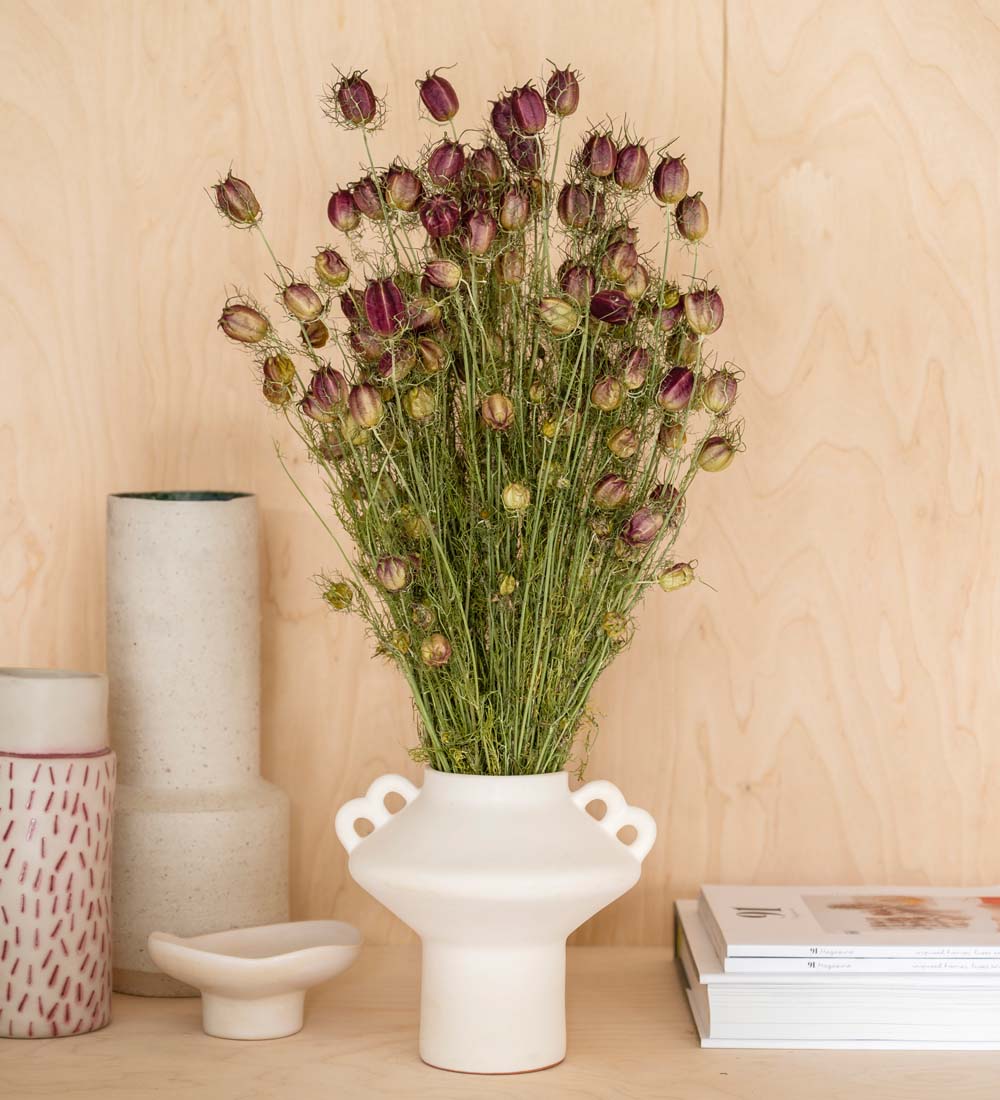 Affectionately nicknamed 'Love in a mist', we know you'll fall for our Dried Nigella Bunch. This ethereal floral stem is ideal for adding interest and texture to an existing arrangement.